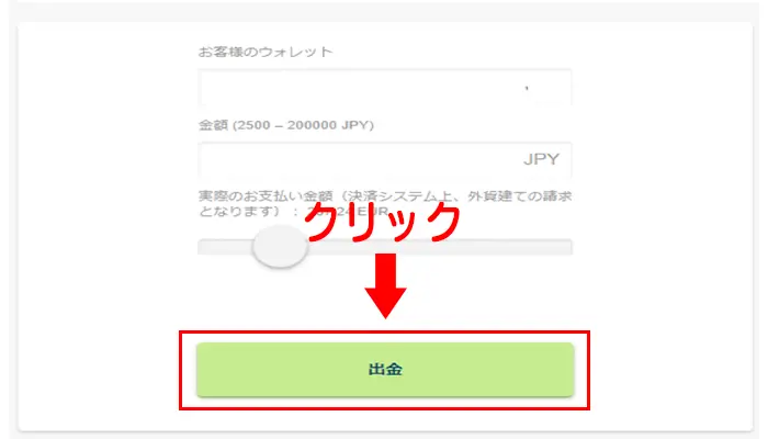 ウォレット情報をすべて入力し終えたら出金をクリックします。