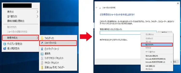 パソコンのショートカットの作成方法は、デスクトップで右クリックをして新規作成を選択します。